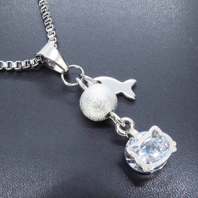 ステンレス製 シルバーカラー 猫フレームキュービックジルコニアのコンパクトなネックレス ベネチアンチェーン