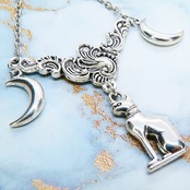 アンティークシルバー 猫の神様バステトチャームと三日月をあわせたペンダントネックレス