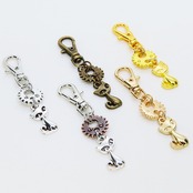 ゴールドカラー 猫と歯車・ギアを組合せたコンパクトなキーホルダー 金具交換可