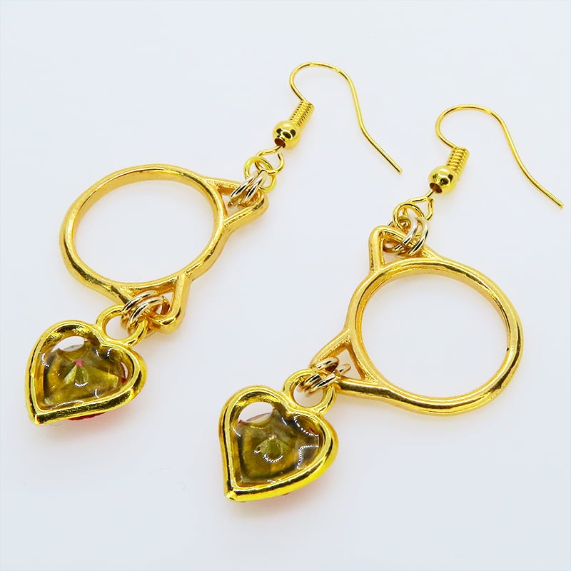 こちらのピアスの魅力は、その愛らしいモチーフと、鮮やかな輝きにあります
