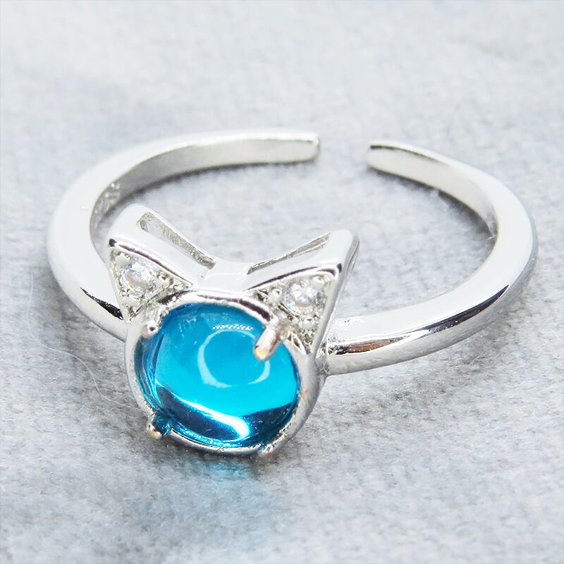 猫耳モチーフの大人可愛いリング シルバー925PLD アクアマリン アクリル ジルコン フリーサイズ 調整可能
