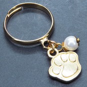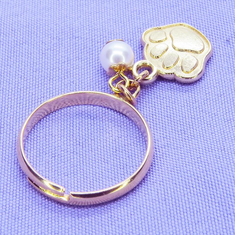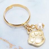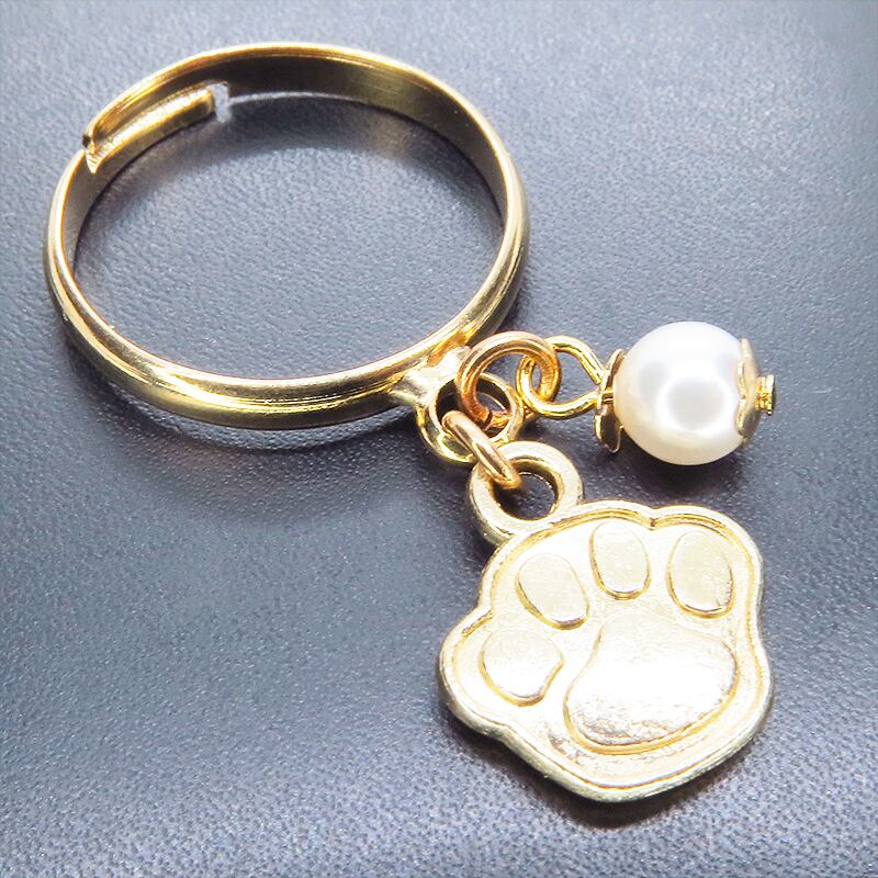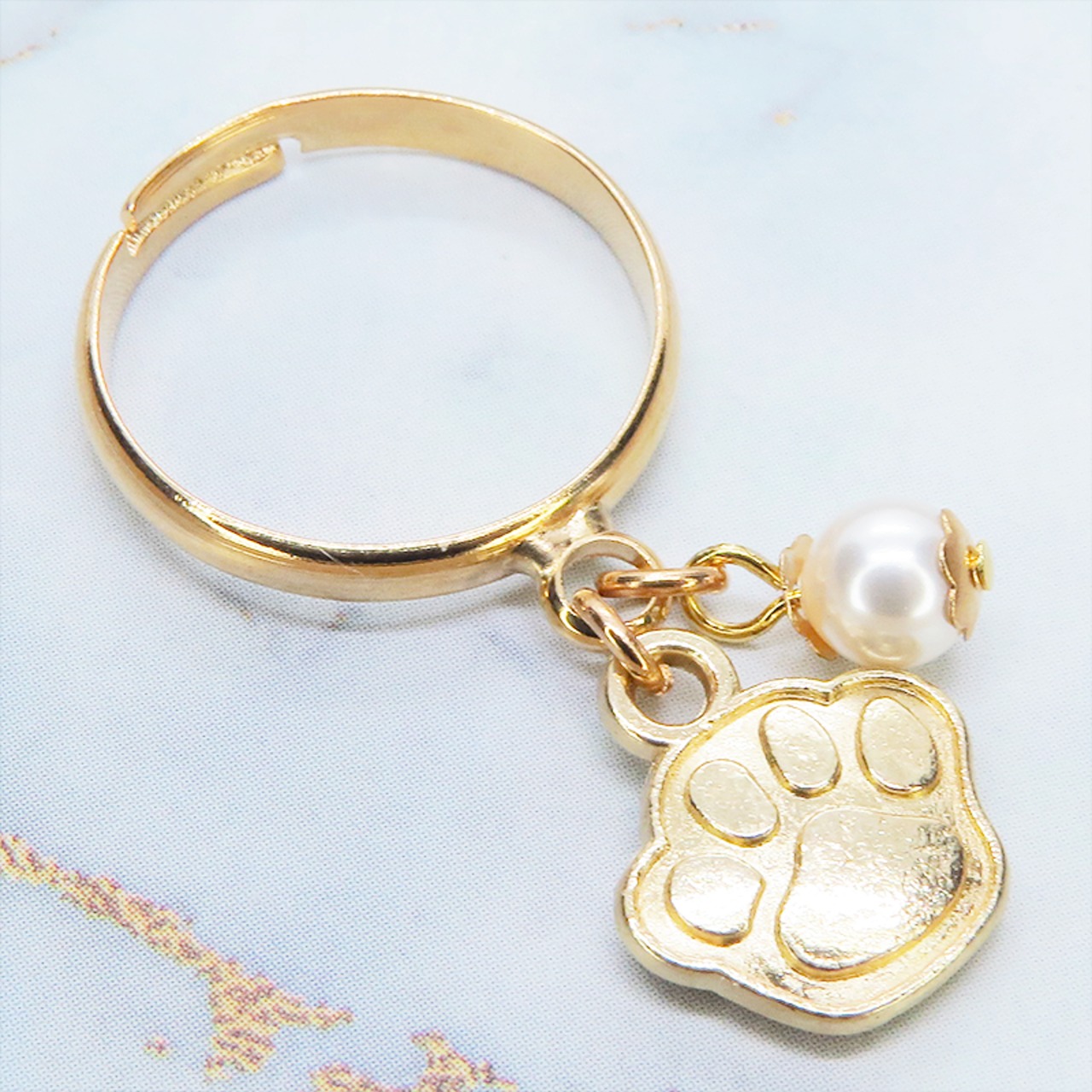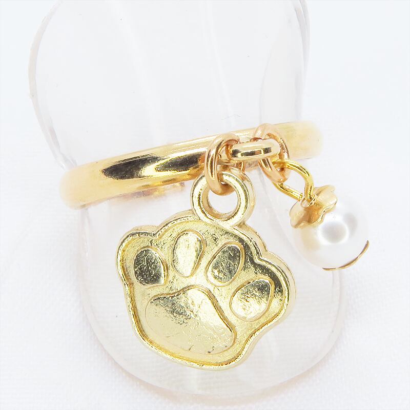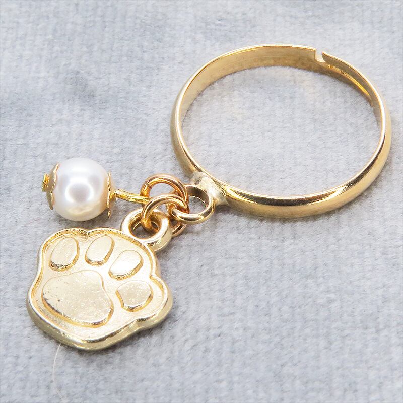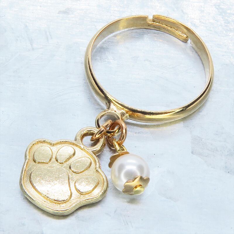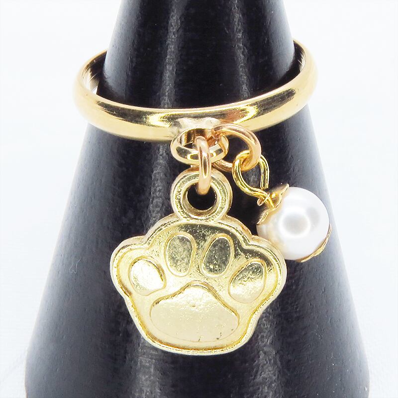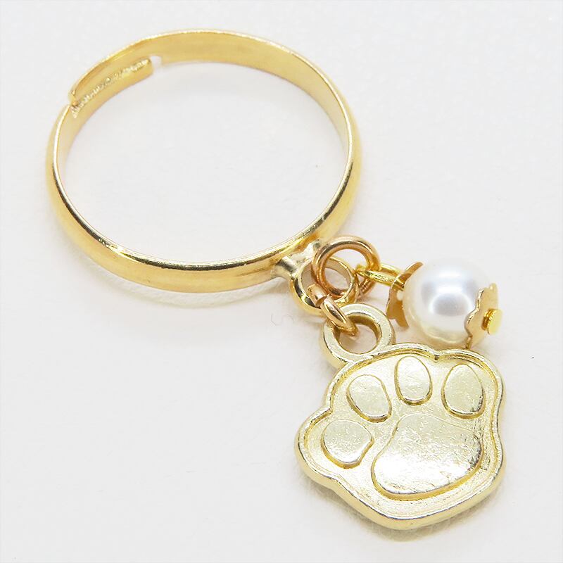 マットゴールド 肉球とスワロフスキーパールの大人可愛いリング フリーサイズ クリスタルホワイト