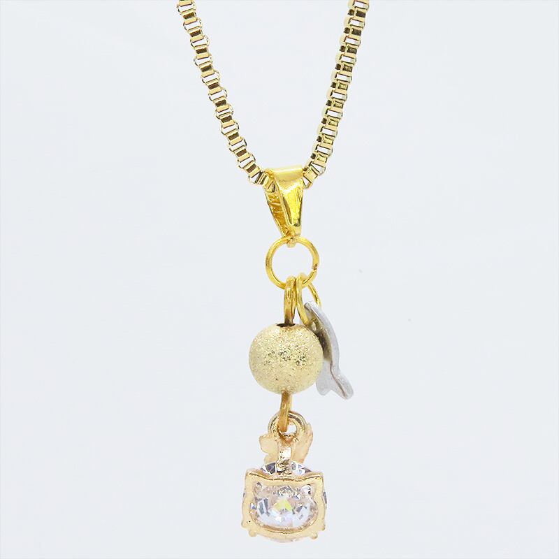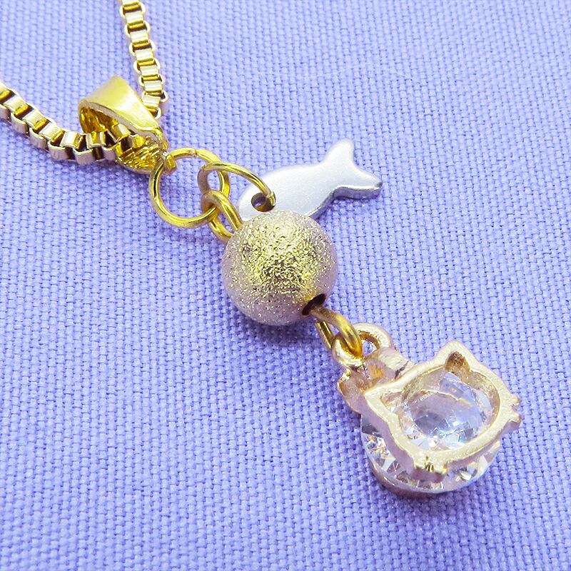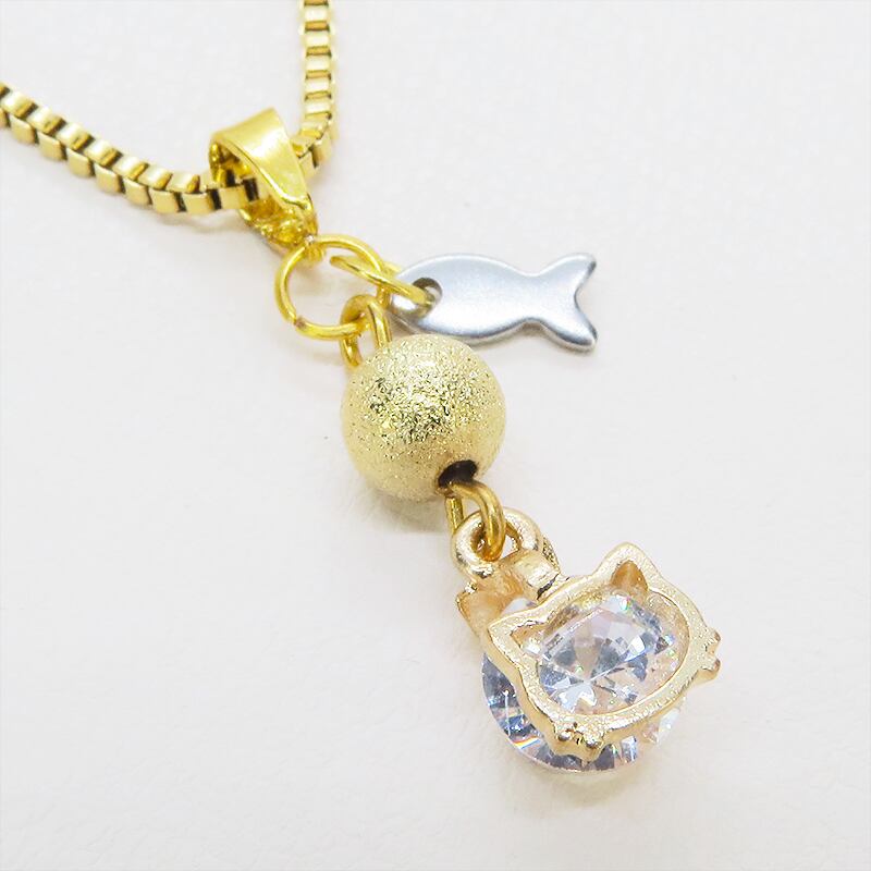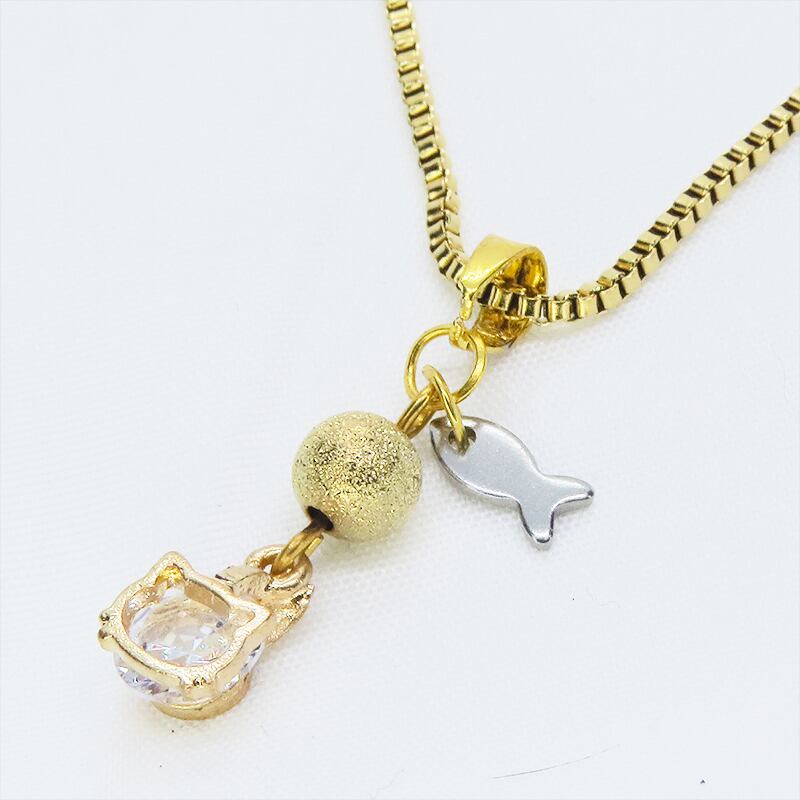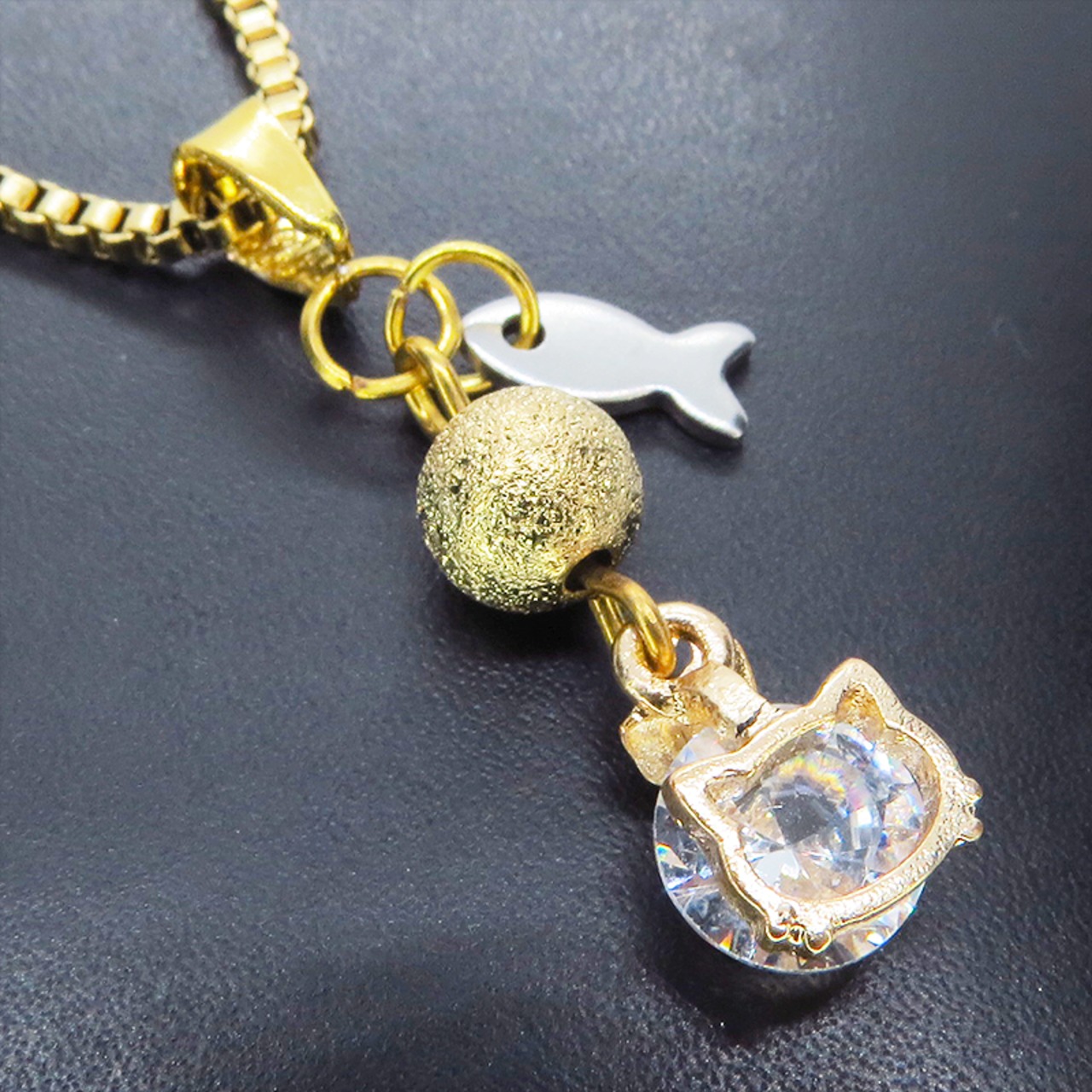 ステンレス製 マットゴールド 猫フレームキュービックジルコニアのコンパクトなネックレス ベネチアンチェーン