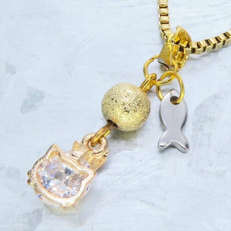 さらに、猫の隣には小さな魚チャームがちょこんと揺れる姿を加え猫好きにはたまらない物語性のある可愛さを演出しています