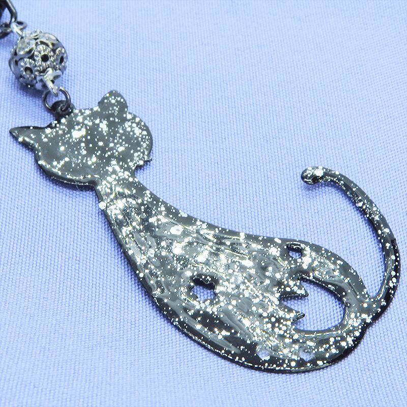 少し大きめの黒猫シルエットモチーフをベースに表面にはシルバーラメを贅沢に散りばめました