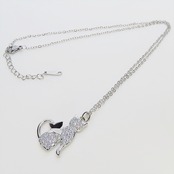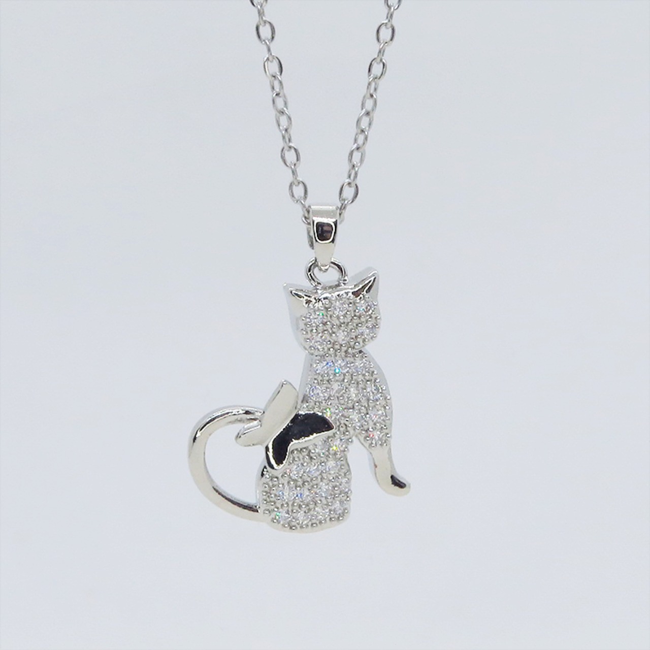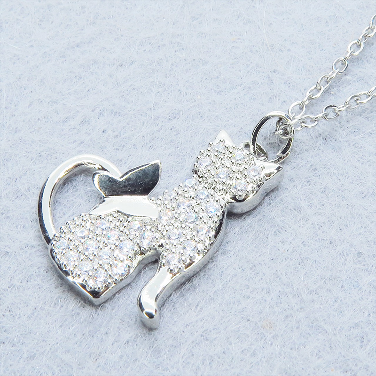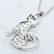 シルバーカラー ステンレス 猫シルエットのペンダントネックレス ラインストーン ビジュー アジャスター付