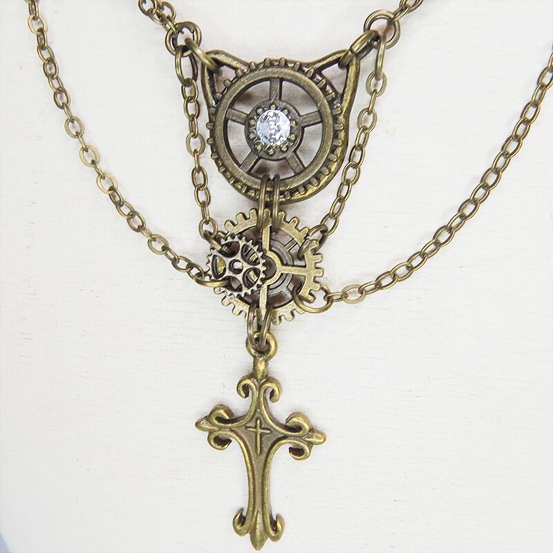 その下には優美な曲線を描くロザリオを組み合わせどこか神秘的で物語性あふれるスチームパンク風の装いに仕上げました