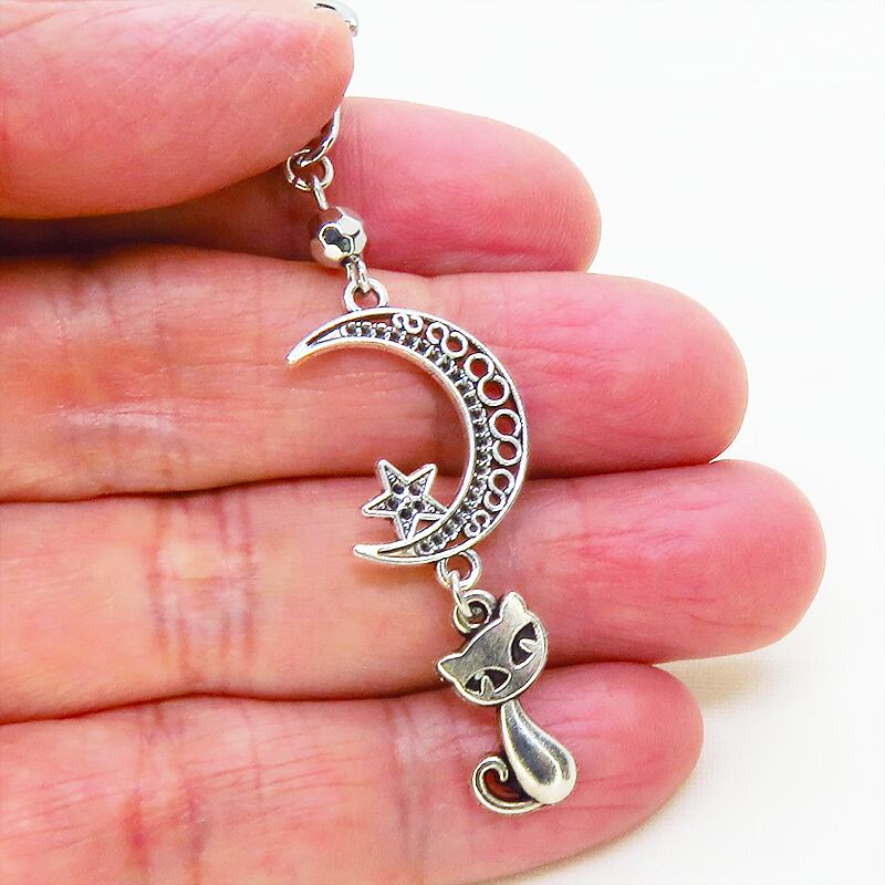手元でゆらゆらと揺れる小さな月と猫は主張しすぎることなく、それでいて確かな個性を放つ絶妙なボリューム感です