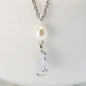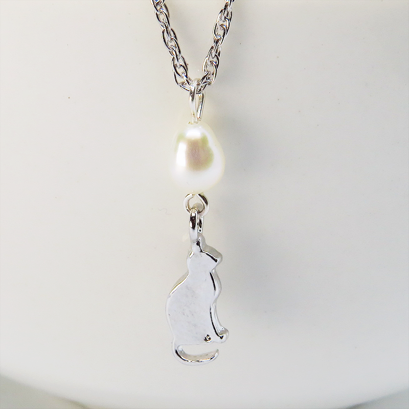 シルバー925製のシンプルにわかりやすい猫モチーフに淡水パールを組み合わせたネックレスです