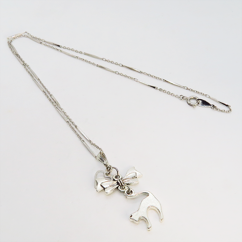 猫とリボンとハートの大人可愛いおしゃれなネックレス 銀古美 アンティーク