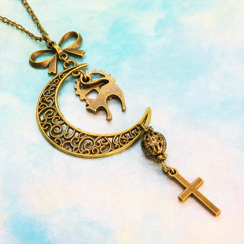 ※素材のモチーフは亜鉛合金にアンティークカラーメッキ、チェーンは鉄製にアンティークカラーメッキ、金具などはスチール製です