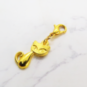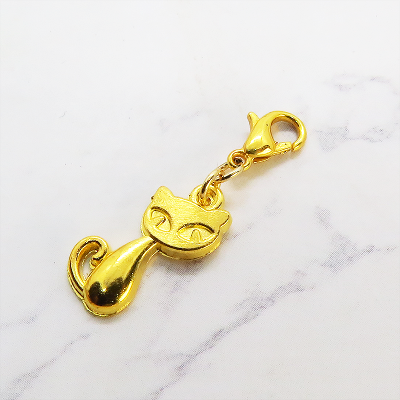 スマホ・マスクチャーム ゴールドカラー 猫モチーフのシンプルでコンパクトなチャーム ジャックピン追加可