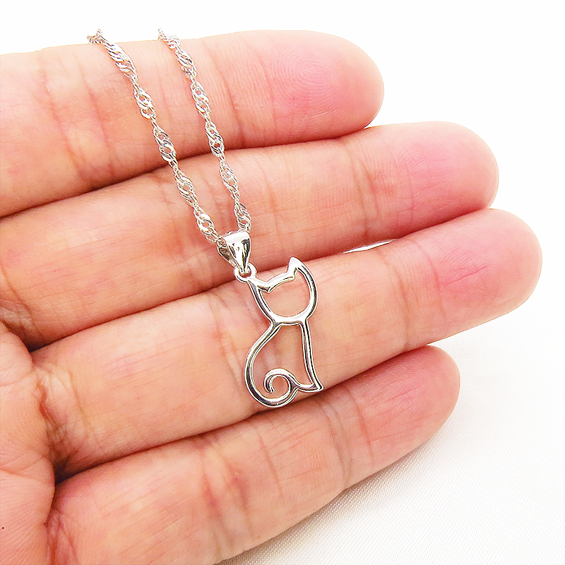 猫シルエットの輪郭をモチーフとしたシルバー925の可愛いネックレスです