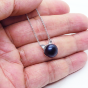 淡水パールの色は真っ黒ではなく青みがかった深い青(ディーブブルー)です