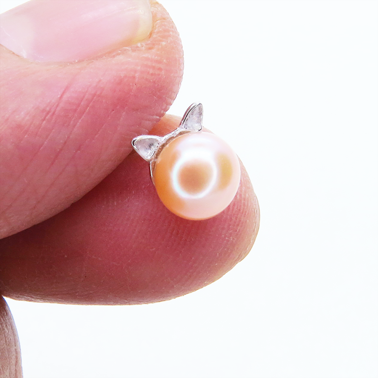 シルバー925 シンプルにさり気なく大人可愛いコーラルピンクの猫耳パールピアス 淡水パール