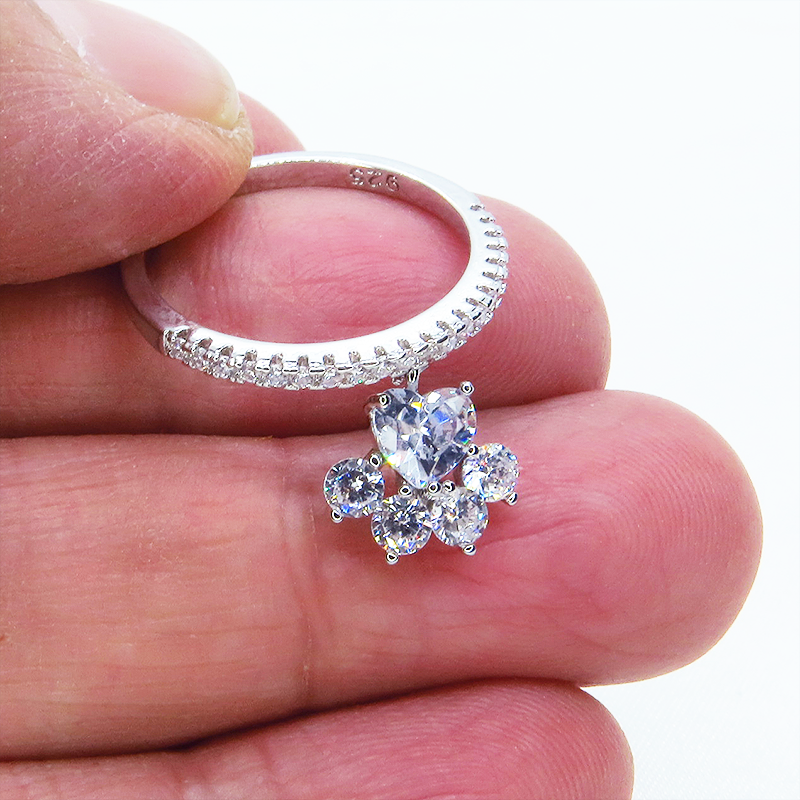 キュービックジルコニアのキラキラ光る肉球モチーフが揺れて指元を揺らします