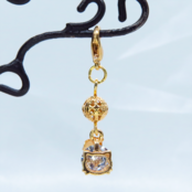 ゴールドカラー猫フェイスフレームに大粒のキュービックジルコニアをはめ込んであり、メタルビーズと組合せた大人可愛いチャームです