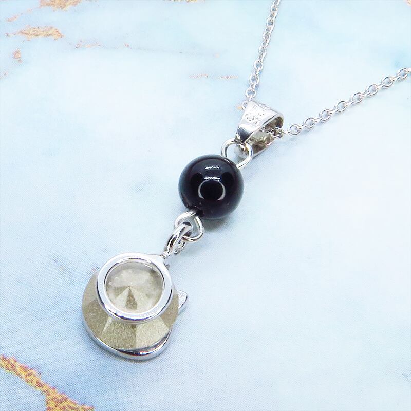 シルバー925 かわいい猫フレームのスワロフスキー(9色選択)とオニキスの大人可愛いネックレス